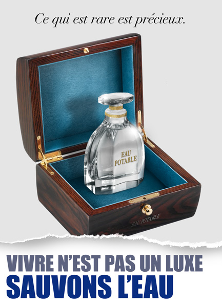 Save Water Ce qui est rare est précieux. Vivre n’est pas un luxe. Sauvons l’eau. Communication / Publicité Retouche