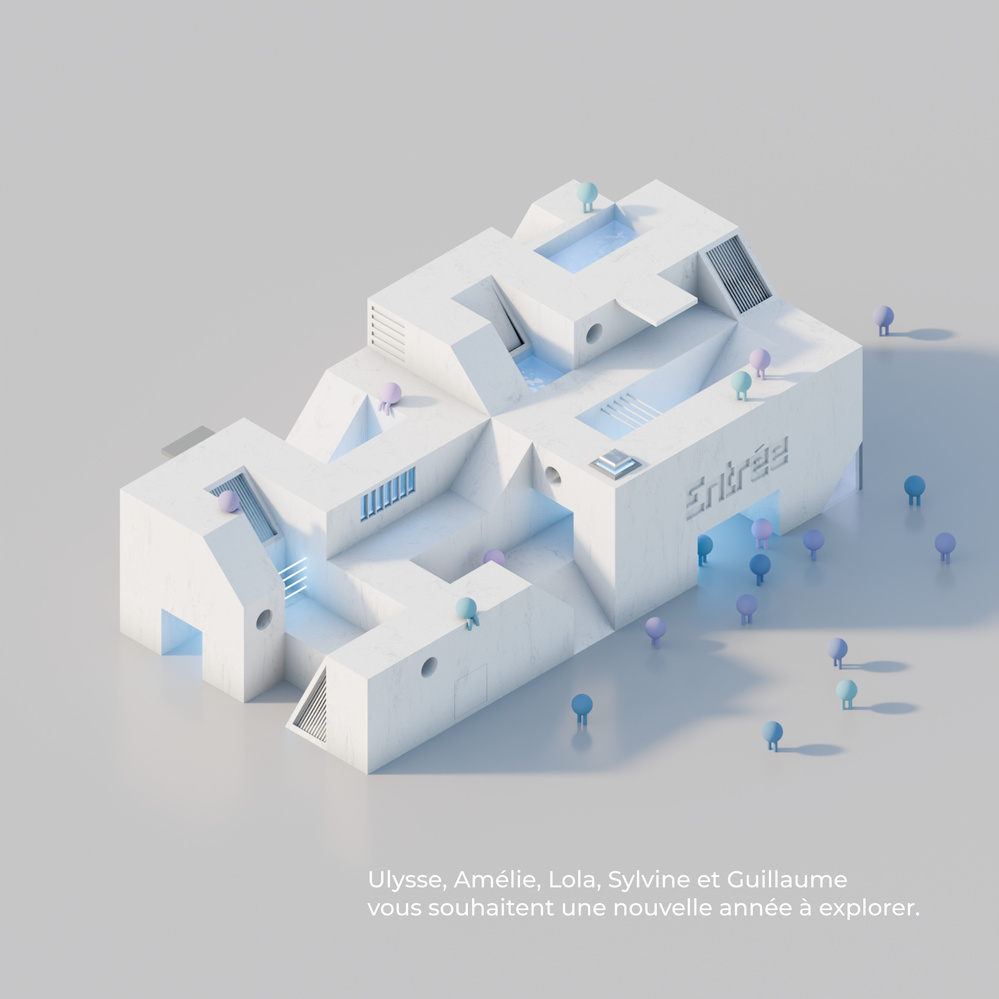 Voeux 2024 Ulysse, Amélie, Lola, Ulysse et Guillaume vous souhaitent une nouvelle année à explorer 3D Communication / Publicité Isométrique Vœux